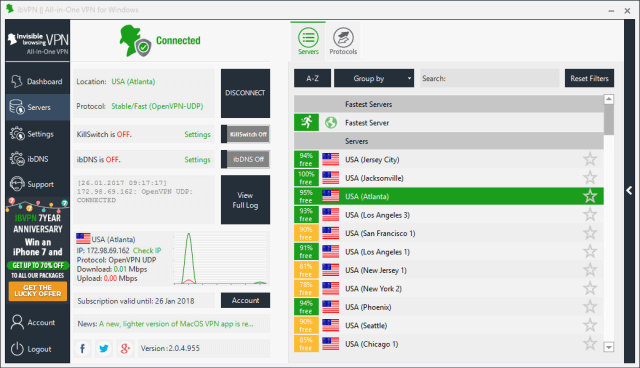 在线隐私服务让会员可以访问位于美国、英国、德国和瑞士的服务器,更多国家正在开发中。